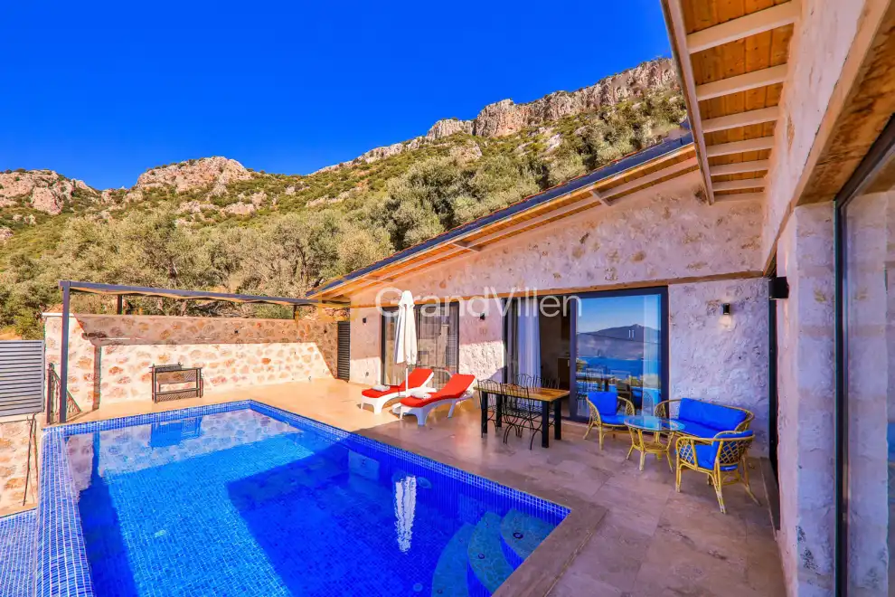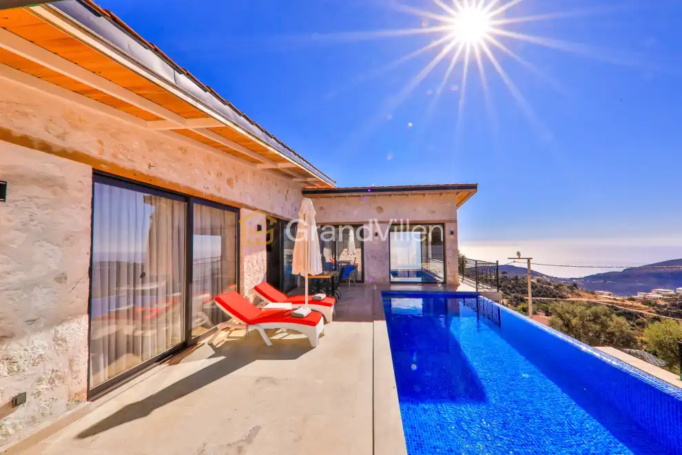 Villa Alaca, ist eine luxuriöse Villa, die sich in der Region Sarnıçbaşı in Kalkan befindet. Mit einem herrlichen Blick auf das Meer und die Natur aus jedem Zimmer bietet diese Villa eine ruhige Lage am Fuße des Taurusgebirges, umgeben von üppigem Grün, wo Sie sowohl das bezaubernde Tages- als auch Nachtleben von Kalkan genießen können. Die Villa verfügt über einen privaten Swimmingpool, einen Poolbereich und einen Garten, die alle geschützt sind. Diese abgelegene Lage macht die Villa besonders ideal für Gäste, die Privatsphäre suchen, sowie für Hochzeitsreisende.