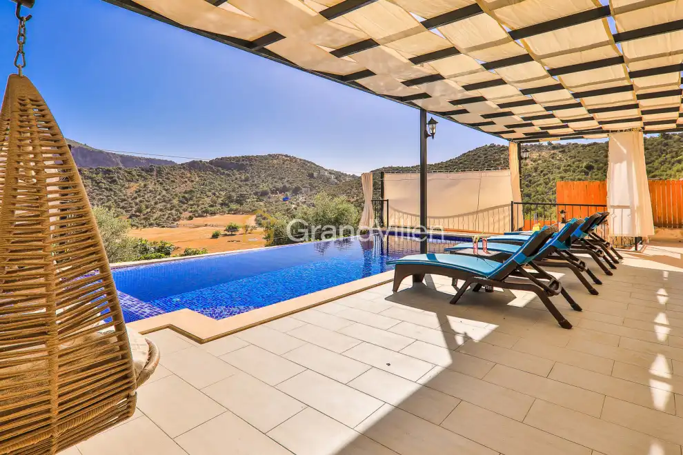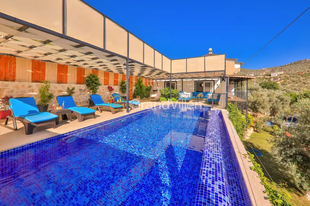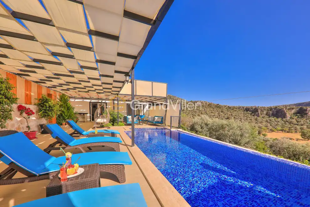 Die Villa Çalıkuşu befindet sich im Kalamar-Gebiet von Kalkan und bietet Platz für bis zu 10 Personen. Mit 5 Schlafzimmern, darunter zwei mit Jacuzzi, und einer modernen Ausstattung ist sie ideal für große Familien oder Freundesgruppen. Die Villa verfügt über einen privaten Pool, einen Whirlpool und einen schönen Garten. Die zentrale Lage ermöglicht es, Restaurants und Märkte in Gehweite zu erreichen, und der Kalamar-Strand ist nur einen kurzen Spaziergang entfernt.