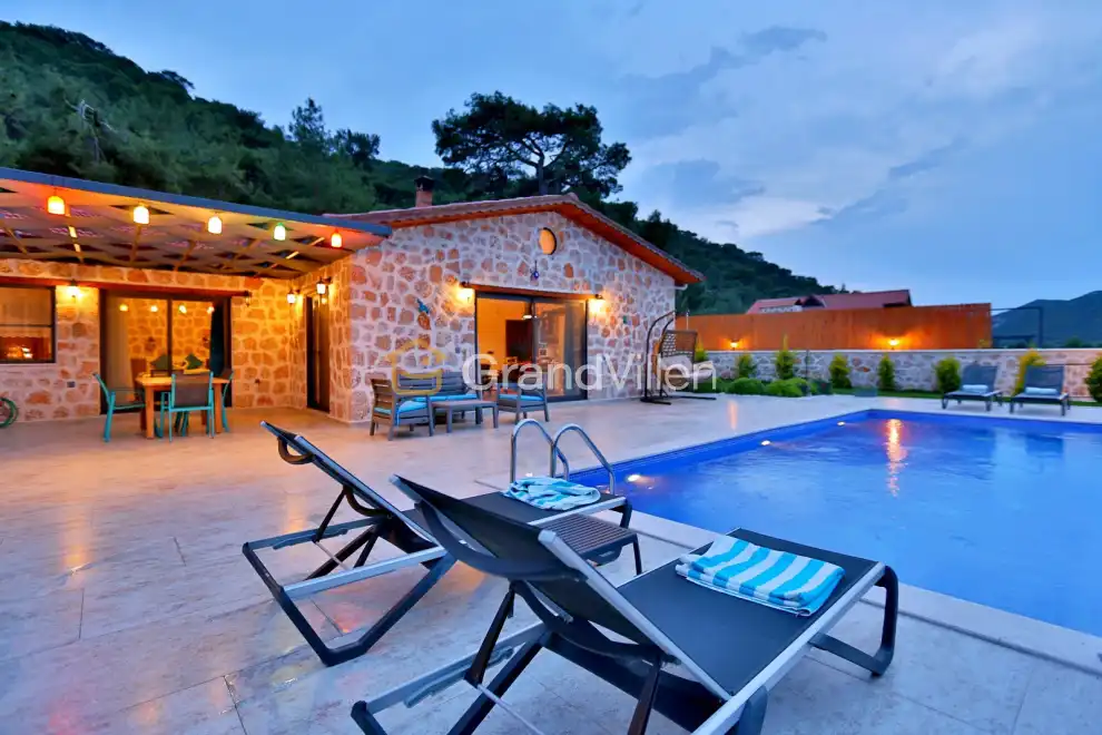 Villa Çamdibi ist eine moderne Ferienvilla im Naturgebiet von Sarıbelen, Kalkan. Sie verfügt über 2 Schlafzimmer und bietet Platz für 4 Personen. Die Villa verfügt über einen privaten Swimmingpool und ist im konservativen (vollständig geschützten) Stil gestaltet.