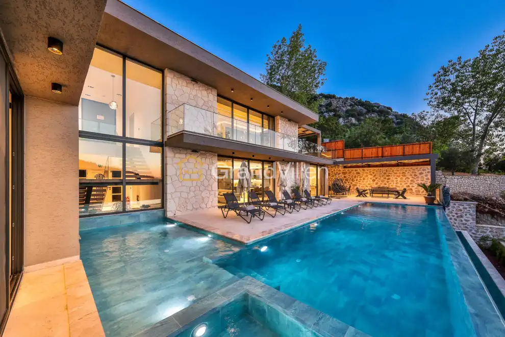 Villa Grand Diamond ist eine 3-Schlafzimmer-Villa mit einer Kapazität für 6 Personen, ausgestattet mit Doppel-Jacuzzis, einem Kino, einem Fitnessraum und Aktivitätsräumen. Sie ist die ideale Wahl für Hochzeitsreisende, große Familien oder Gruppen von Freunden. Die Villa ist mit luxuriösem und stilvollem Design modern und geschmackvoll eingerichtet, wobei jedes Detail für den Komfort der Gäste berücksichtigt wurde. Sie befindet sich an einem einzigartigen, abgeschiedenen und natürlichen Ort im Herzen der Natur, mit atemberaubendem Blick auf die Natur, der Ruhe und Frieden miteinander vereint. Sie können die atemberaubende Aussicht auf der Poolterrasse genießen, im Garten mit Aktivitäten wie Tischtennis und Schaukeln Spaß haben und im Jacuzzi entspannen, um den Stress des Jahres hinter sich zu lassen. Die Villa verfügt über drei geräumige Schlafzimmer sowie einen großen Garten und eine Poolterrasse. Der private, abgeschirmte Pool wurde speziell für den Komfort und das Vergnügen unserer Gäste gestaltet. Die Villa Grand Diamond, in der Sie unvergessliche Erinnerungen schaffen können, erwartet Sie.