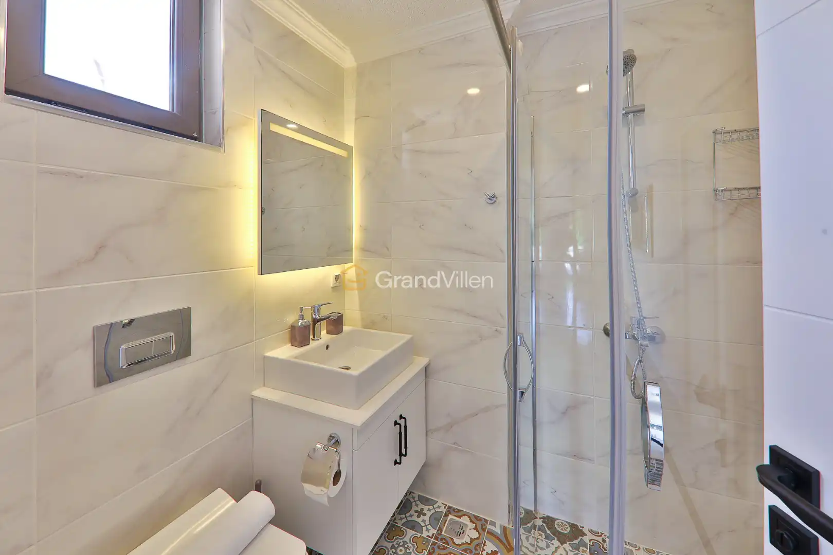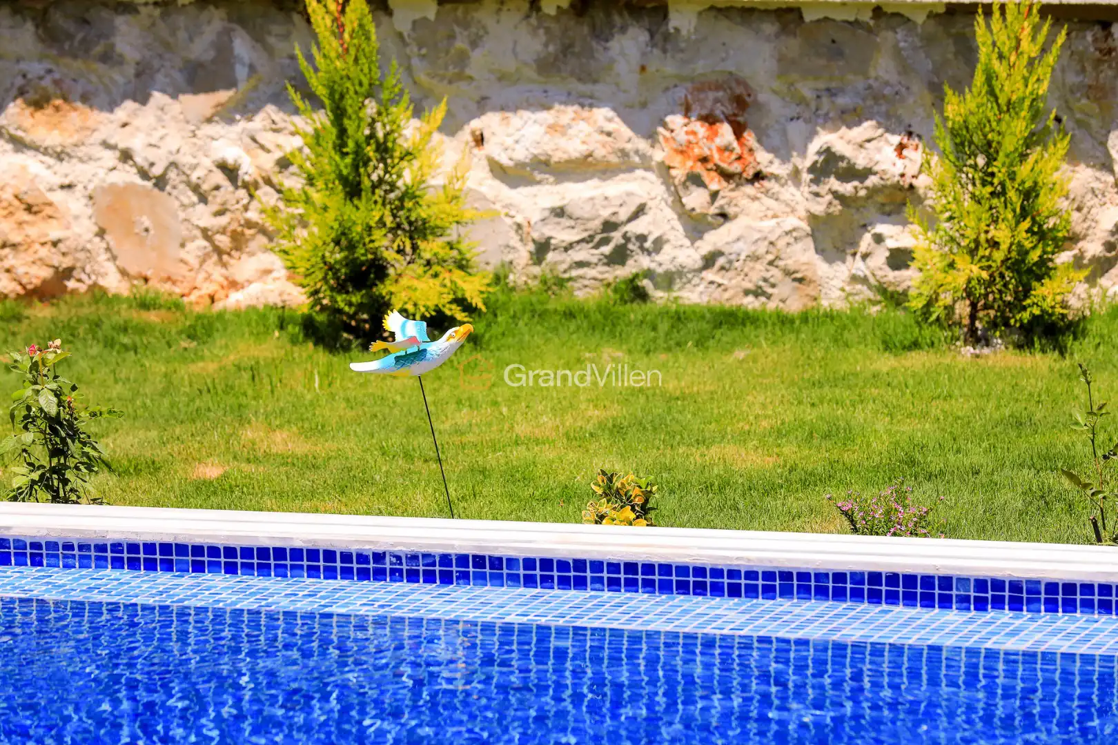 Die Villa verfügt über einen privaten Swimmingpool mit den Maßen 5,5 m x 3,5 m und einer Tiefe von 1,4 m. Der Poolbereich sowie die Poolterrasse sind großzügig und bieten einen herrlichen Blick auf das Meer.