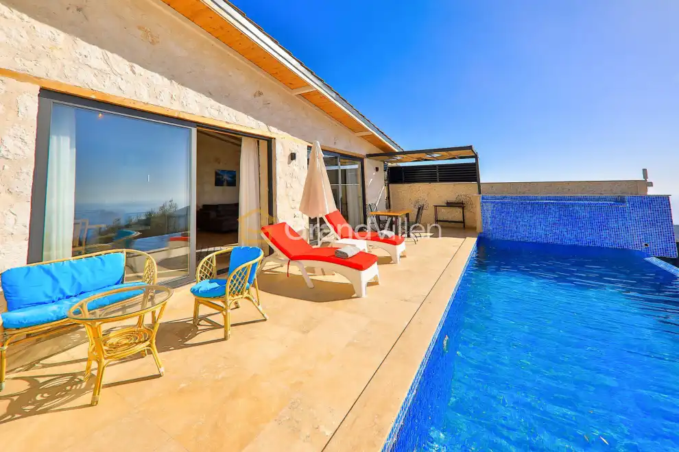 Villa Ruj ist eine luxuriöse Ferienvilla in der Region Sarnıçbaşı in Kalkan, die von atemberaubenden Meer- und Naturblicken umgeben ist. Die Villa bietet Ihnen die Möglichkeit, in jeder ihrer Zimmern die einzigartigen Ausblicke zu genießen und gleichzeitig das faszinierende Leben von Kalkan sowohl tagsüber als auch nachts zu beobachten. Inmitten der grünen Natur am Fuße der Taurusgebirge gelegen, bietet diese ruhige und friedliche Lage einen perfekten Rückzugsort. Die Villa verfügt über einen privaten Swimmingpool, einen geschützten Poolbereich und einen Garten, der Ihnen Privatsphäre bietet. Dies macht die Villa besonders für Gäste, die Privatsphäre suchen, sowie für frisch vermählte Paare zu einer idealen Wahl.