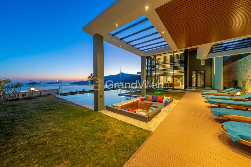 Die Villa Safran Flower befindet sich in der Region Kalamar in Kalkan und bietet einen atemberaubenden Blick auf das Meer sowie eine panoramische Aussicht auf Kalkan. Sie liegt in einer privaten, ruhigen Gegend, die dennoch sehr nah am Stadtzentrum liegt. Unsere Villa, die auf einem sehr großzügigen Grundstück gebaut ist, ermöglicht es Ihnen, von jedem Zimmer aus den Blick auf das Meer zu genießen. Mit 4 Schlafzimmern und einer Kapazität von 8 Personen ist diese Villa die ideale Wahl für große Familien oder Freundesgruppen. Die Villa bietet alle Annehmlichkeiten, die Sie für einen komfortablen Aufenthalt benötigen, einschließlich eines Innenpools, einer Sauna, einem Kino für unterhaltsame Stunden und einem Fitnessbereich für sportbegeisterte Gäste. Auf der großzügigen Sonnenterrasse können Sie den Pool mit einem unglaublichen Blick auf das Meer genießen.