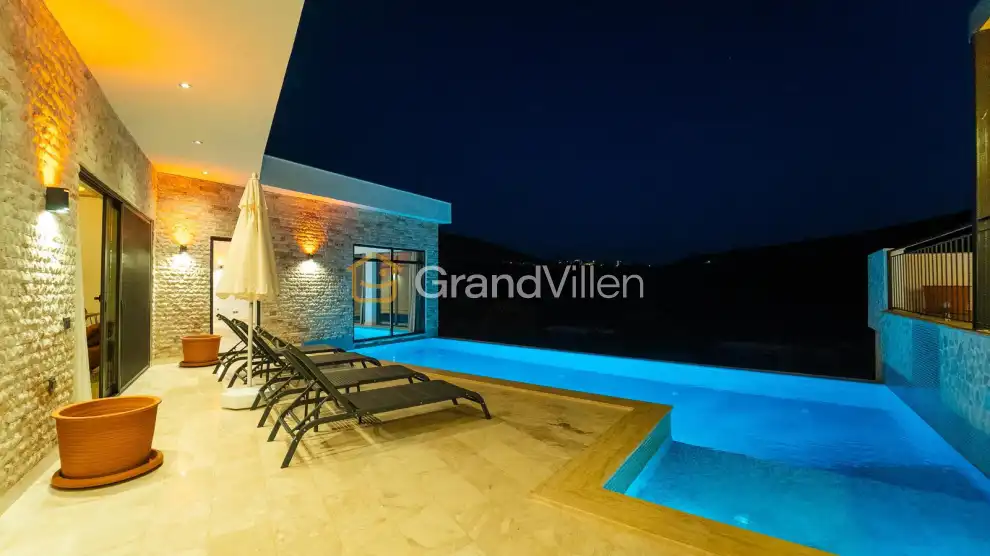Die Villa Suyolu 2 befindet sich im Ulugöl-Gebiet von Kalkan und verfügt über 2 Schlafzimmer für bis zu 4 Personen. Die im Steinkonzept gestaltete Villa ist ideal für kleine Familien und Flitterwochenpaare. Zur Ausstattung gehören ein privater Außenpool, ein Innenpool, ein Jacuzzi im Hauptschlafzimmer, ein Grillbereich sowie eine Schaukel. Das Zentrum von Kalkan ist schnell erreichbar.