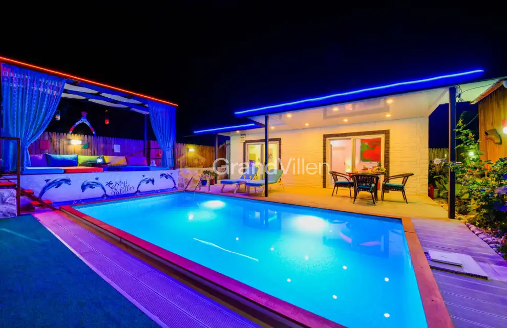 Die Villa Tuğba befindet sich im Dorf Üzümlü in Kalkan und bietet einen atemberaubenden Blick auf die Natur. Mit ihrem privaten, abgeschirmten Pool ist sie die ideale Wahl für konservative Familien und Hochzeitsreisende. Die Villa Tuğba wurde mit bunten und komfortablen Möbeln ausgestattet, die den Komfort erhöhen und unvergessliche Momente in Ihrem Urlaub schaffen. Mit ihrer Eleganz wartet die Villa auf Gäste, die einen ruhigen, privaten Urlaub abseits der Menschenmengen suchen.